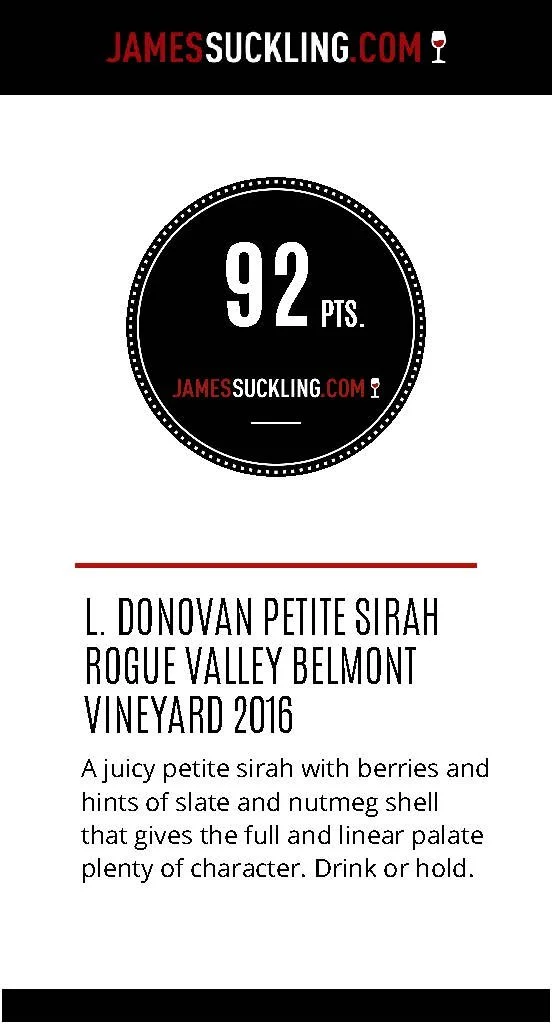 L. DONOVAN PETITE SIRAH ROGUE VALLEY BELMONT VINEYARD 2016